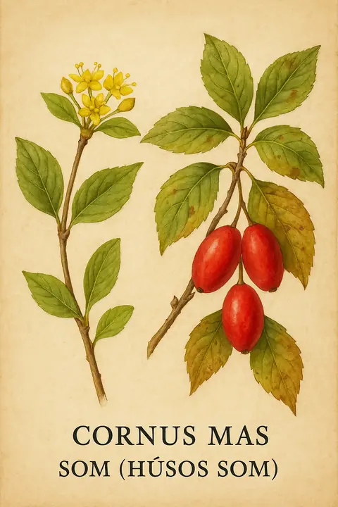 Som (húsos som): Lombfakadás előtt nyíló sárga virágernyők; nyár végén piros, megnyúlt csonthéjasok. Meleg, meszes erdőszéleken és sövényekben őshonos, bogyóit madarak terjesztik. Magas C-vitaminú lekvár és szörp alap; élő sövényekben folyosókat erősít.