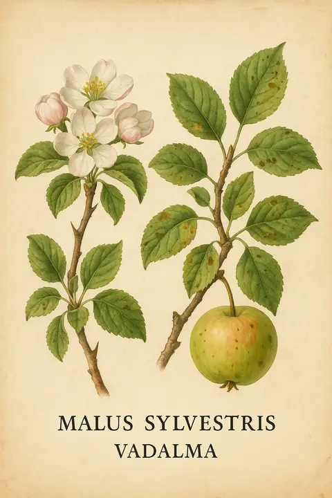 Vadalma: Kicsi, savanyú alma; gyakran tüskés hajtások, kisebb kerekded levelek, mint a nemes almáé. Ligeterdők és erdőszegélyek fája, beporzókat bőséggel lát. Pektinben gazdag; állományai génáramlási hidat képeznek.