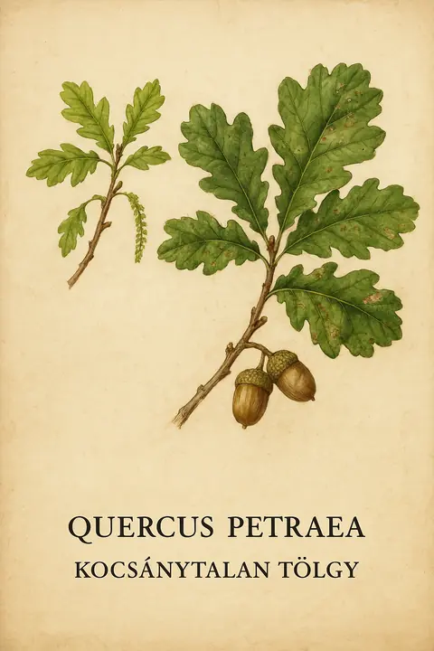 Kocsánytalan tölgy: Makkja ülő, a levelek hosszabb nyelűek, válluk ék alakú. Száraz dombhátakon, savanyúbb talajon uralkodó. Szinkron teltermései a nagyvadállomány és a cserjeszint dinamikáját is hangolják.