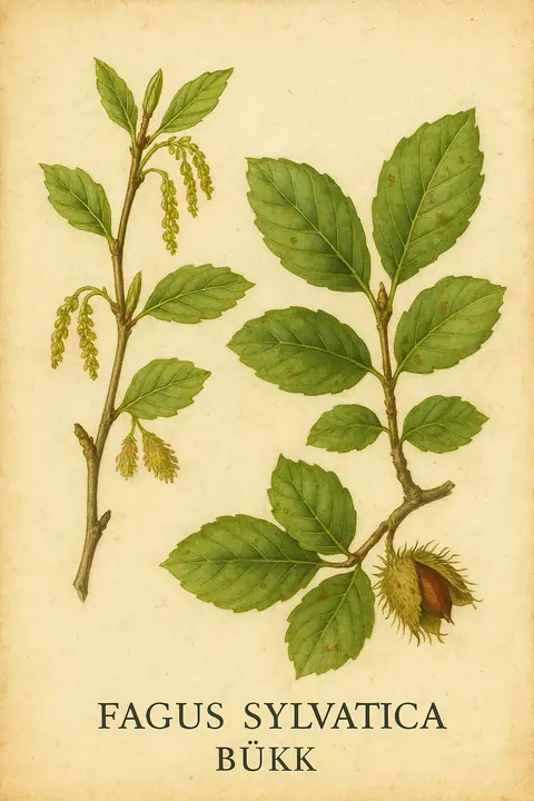 Bükk: Az ősbükkösök világörökségi helyszínek. Sima, szürke kéreg, késői fakadás, árnytűrés; bükkmakk teltermésekben hull. Hűvös, párás mikroklímát és vastag avarszőnyeget tart fenn. Gyökérkapcsolatai kiterjedt, stabil erdőstruktúrát segítenek. Makkos években a táplálékbőség rágcsáló- és kullancsciklusokat is felerősít. Bükkforgáccsal füstölve sajtot, halat jellegzetes íz éri.