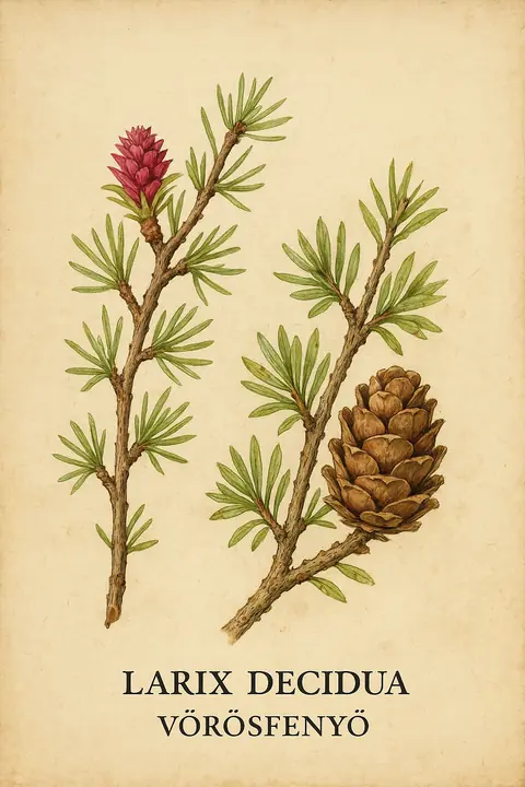 Vörösfenyő: Lombhullató fenyő, puha zöld tűi ősszel aranyra váltanak; kicsi, felálló tobozok. Hegyi erdőkben gyorsan záródik, faanyaga tartós. Tűhullása vastag avart képez, ami a talajkört és a környező állományokat stabilizálja.