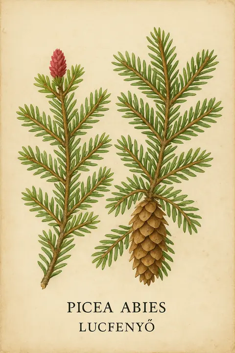 Lucfenyő: Négyélű tűk rövid fapegyen (sterigmán), lecsüngő tobozok; vörhenyes, pikkelyes kéreg. Hegyi–boreális erdők fája, szél- és szúkárokra érzékeny felmelegedés mellett. Faanyaga kulcs a faiparban; zárt állománya párás mikroklímát tart.