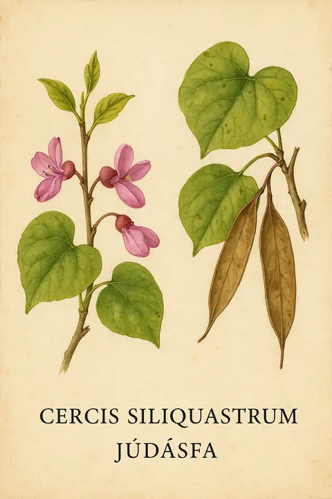 Júdásfa: Levéltelen ágakon nyíló rózsaszín pillangós virágok (kauliflória), kerekded szíves levelek. Napfényes, száraz helyet kedvel. Hosszasan fennmaradó hüvelyei és tavaszi nektára kínált beporzóútvonalakat sűrítenek.