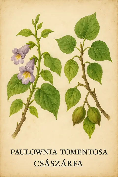 Császárfa: Rendkívül nagy levelek és kora tavaszi, illatos, lila virágtömeg. Ultrakönnyű fája (kiri) hangszerekhez, díszdobozokhoz kedvelt. Friss zúzalékból is kikel, ezért több helyen terjedőképesnek tartják, lombja por- és zajszűrő zöldsávot képez.